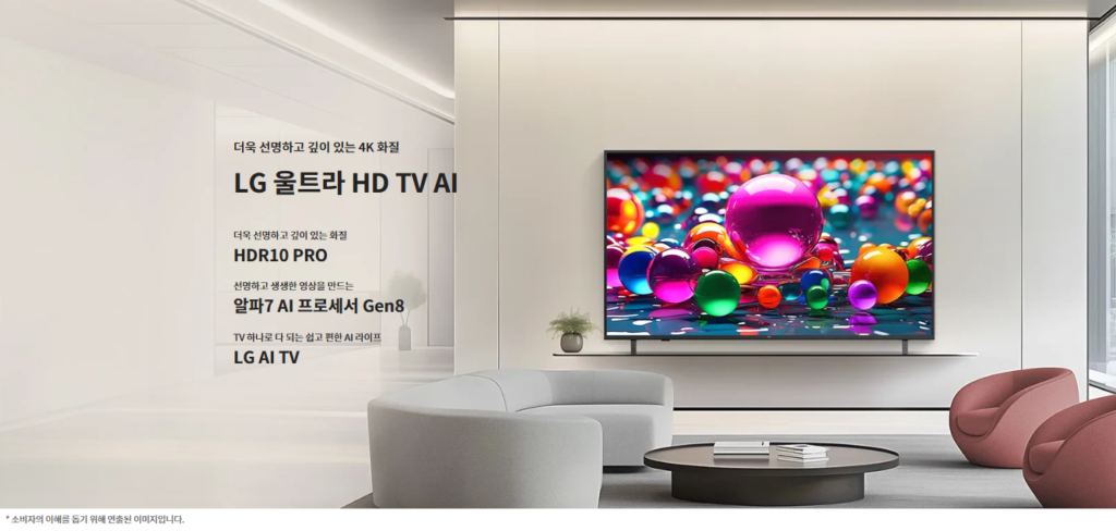 - 울트라 HD AI: 기본형 패널이지만 AI 프로세서를 넣어 화질을 최대한 보기 좋게 다듬어줍니다.